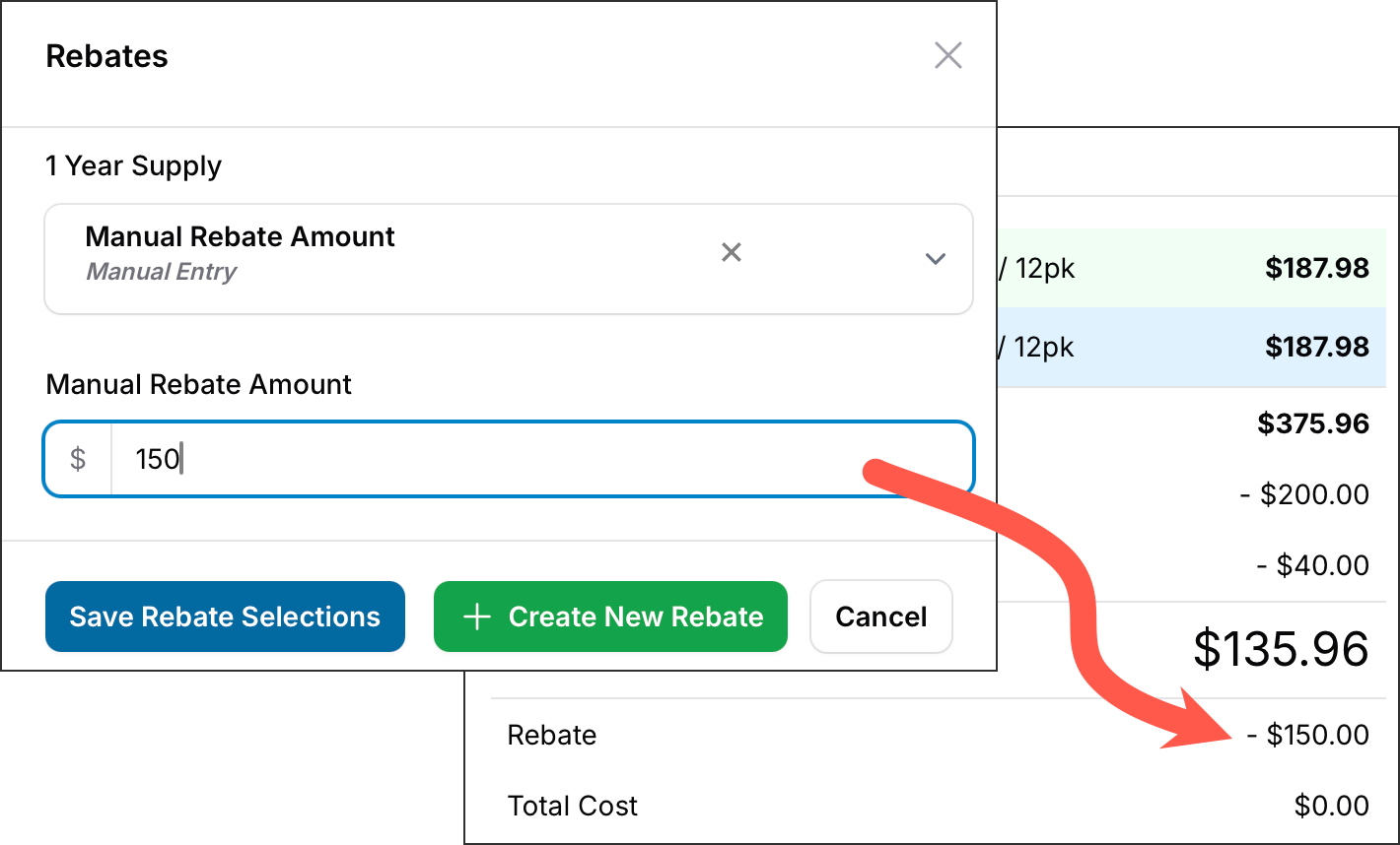 Rebates can be seamlessly applied to price quotes during the calculation process, making it easy to highlight savings for your patients.