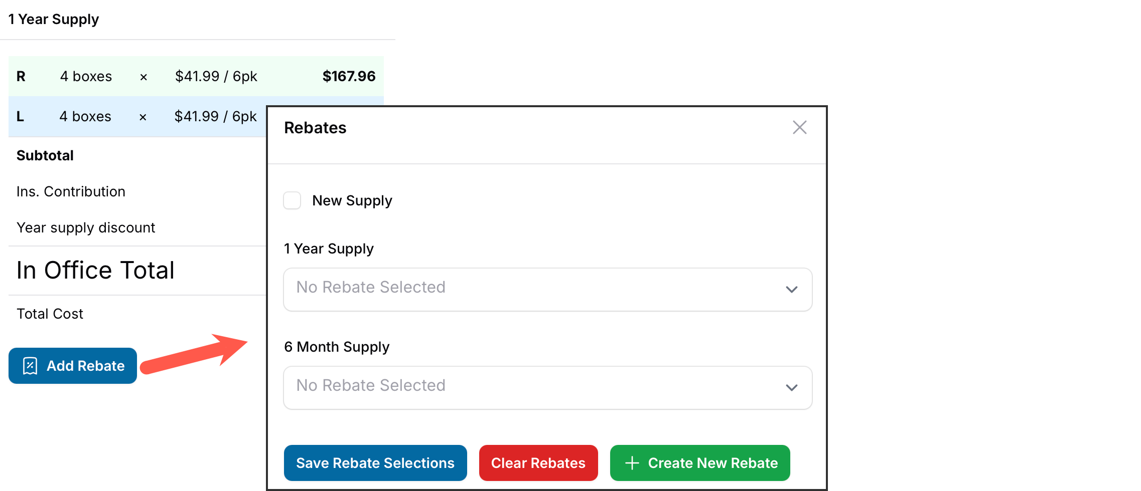 Rebates can be seamlessly applied to price quotes during the calculation process, making it easy to highlight savings for your patients.
