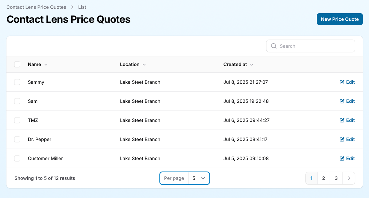 Create a New Quote: Click the “New Price Quote” button to generate a new quote. This will take you to a screen where you can input patient-specific details and lens information.