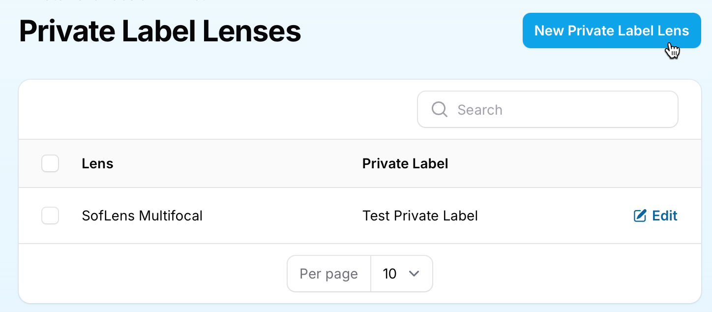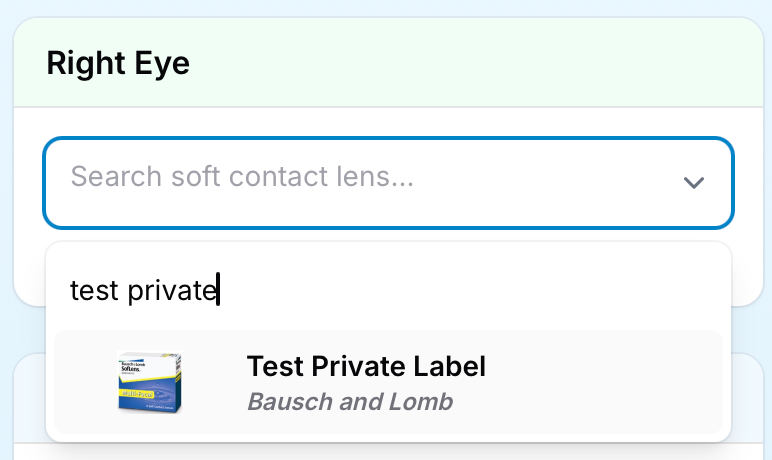 Private labeling acts as an alias for a brand-name lens, effectively linking the private-label lens to its original brand-name counterpart. This feature allows you to offer patients a personalized experience while maintaining the high standards associated with major manufacturers