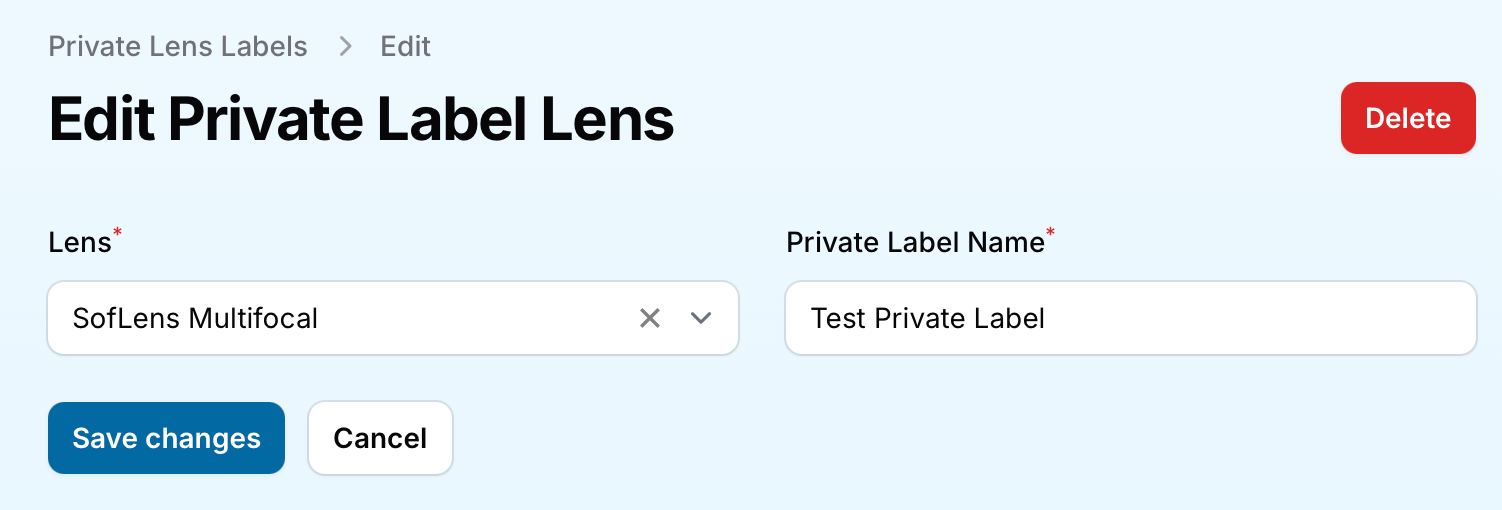 Steps to Add a Private Label NamePrivate Label Lens ScreenTo associate a private label name with a lens brand, follow these simple steps: